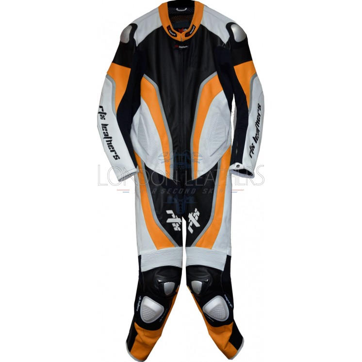 RTX Halo Orange Black Motorcycle Leathers 1Pc Suit